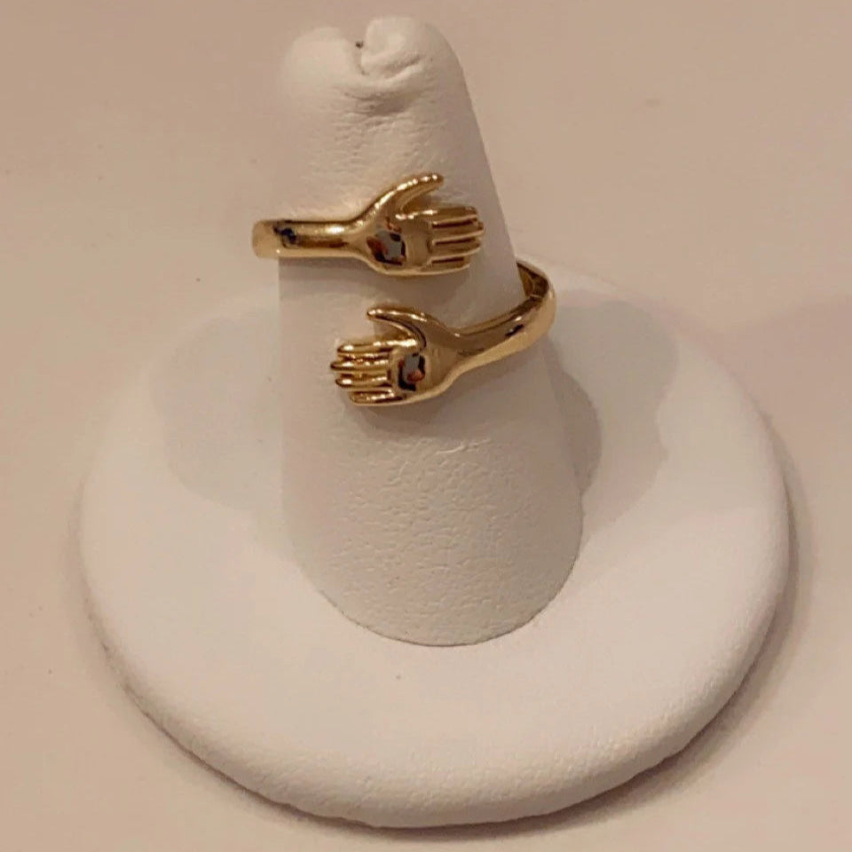 18K Gold Plated Gold Embracing Hands Ring