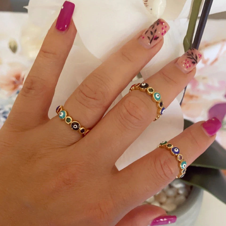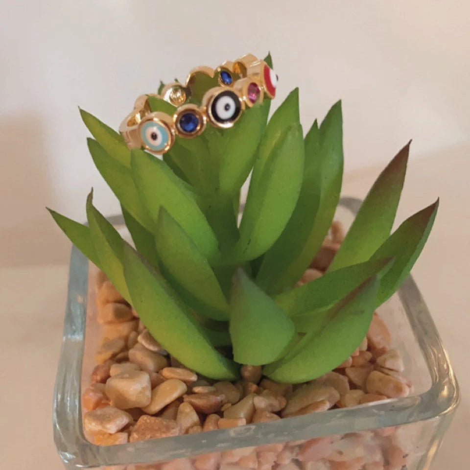 Beautiful evil eye beaded gemstone and cubic zirconia Band Ring made in High Quality Gold Plated.