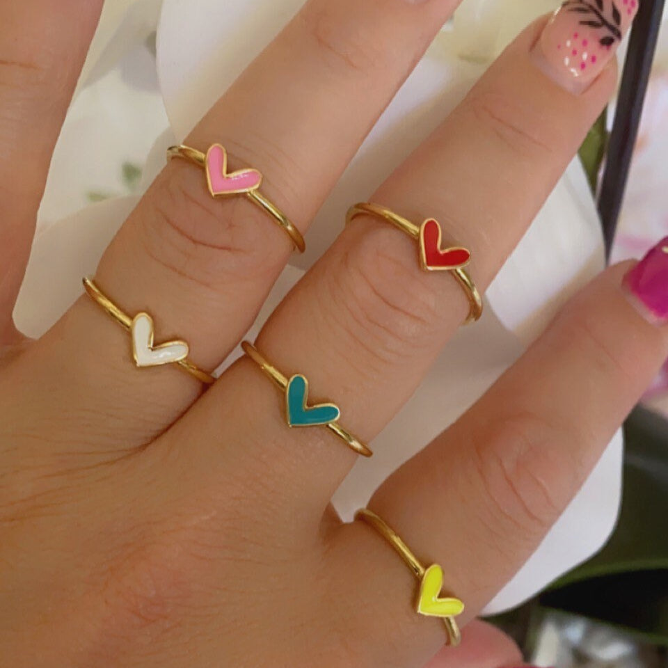These colorful enamel rings are perfect for stacking together and pairing with your other favorite rings.